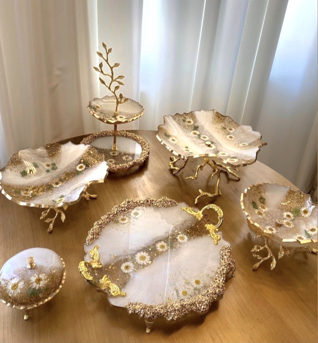 رنگ سفید طلایی همراه با گل بابونه و ورق طلا